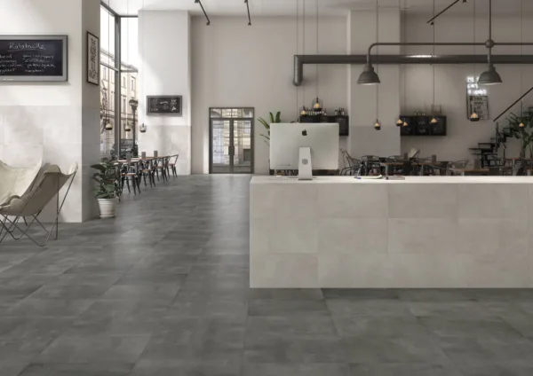 Mẫu gạch này thường được sử dụng trong căn hộ chung cư, nhà phố hiện đại hoặc quán cà phê, studio theo phong cách industrial. Màu sắc trung tính giúp không gian trở nên gọn gàng, tinh tế và dễ phối với đồ nội thất kim loại, gỗ hoặc kính.