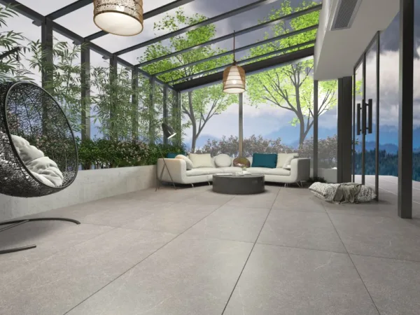 Không gian mở: Tận dụng ánh sáng tự nhiên kết hợp với gạch ốp lát khổ lớn để tạo sự thông thoáng.