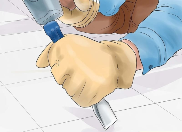 • Với nền gạch được dán bằng keo chuyên dụng hoặc hồ dầu chắc, có thể cần dùng máy đục bê tông hỗ trợ.
