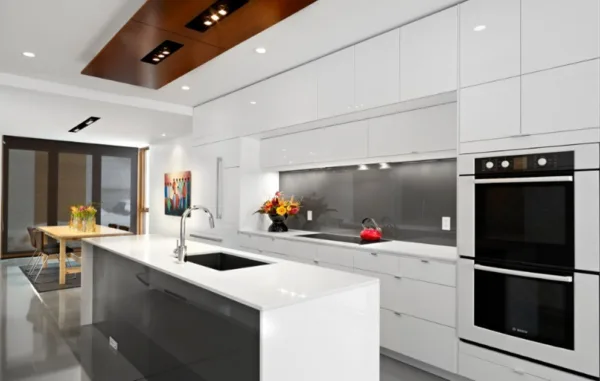 - Với tông màu tương phản, bạn có thể chọn gạch sáng cho tủ bếp tối hoặc ngược lại. Đây là cách phối gạch ốp nhà bếp rất hiện đại, tạo điểm nhấn mạnh mẽ và ấn tượng.