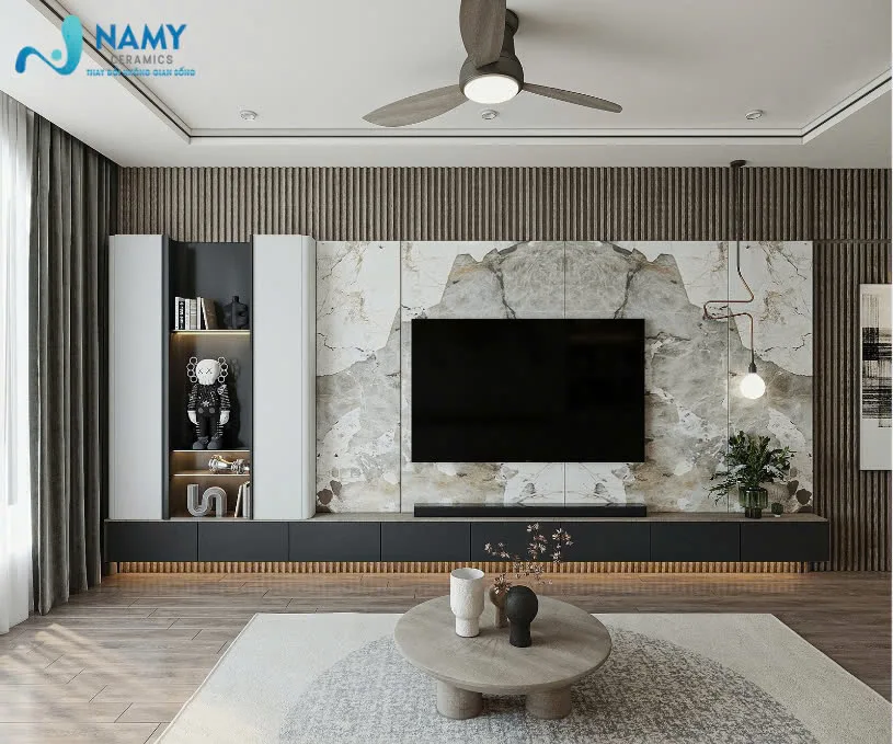 Là một nét đột phá mới trong thiết kế nội thất hiện đại, đá nung kết ốp vách tivi đã trở thành xu hướng được rất nhiều người lựa chọn. Không chỉ sở hữu nhiều vẻ đẹp độc đáo, bắt mắt mà sản phẩm này còn có chất lượng vượt trội, giá thành phải chăng. Sau đây cùng theo chân NAMY Ceramics tìm hiểu một số mẫu đá nung kết ốp tường tivi đẹp, mới nhất hiện nay nhé.