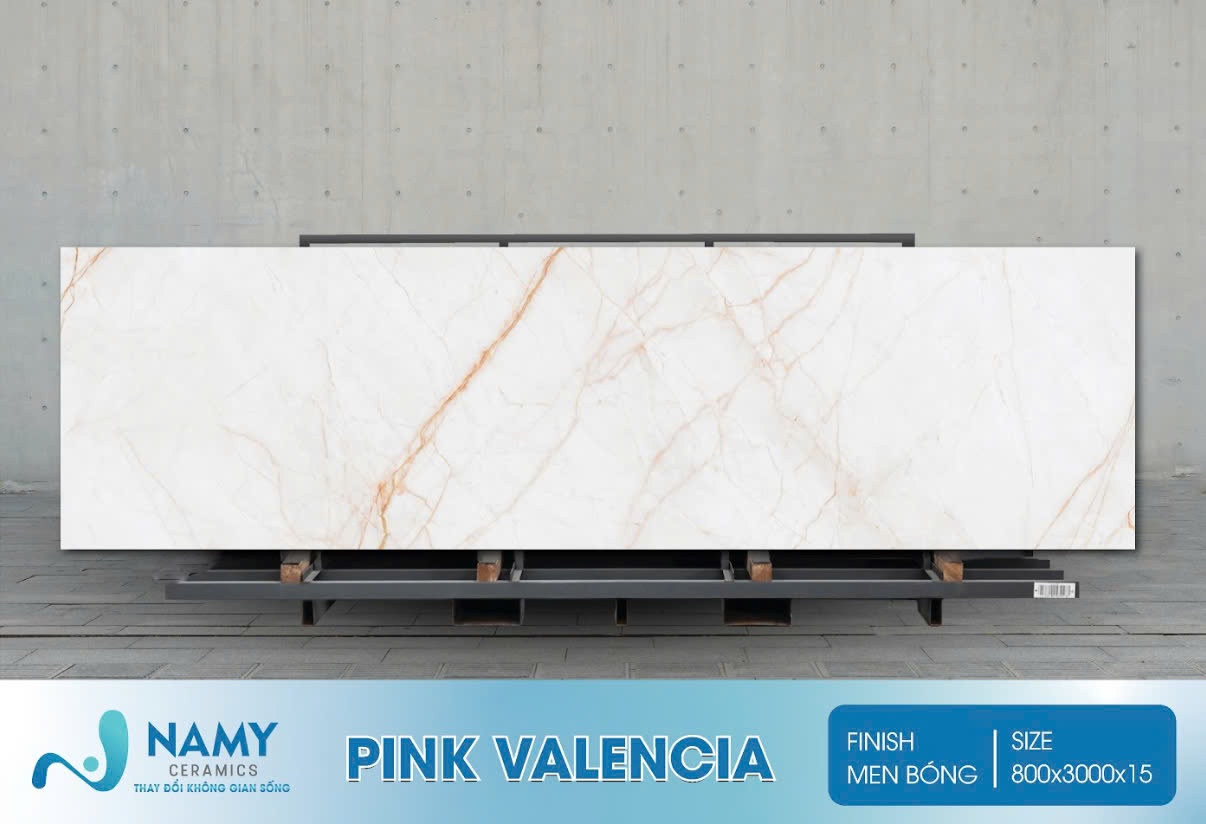 Tên gọi khác: Đá nung kết màu trắng Pink Valencia, đá nung kết vân đá Pink Valencia, đá nung kết 800×3000 Pink Valencia.