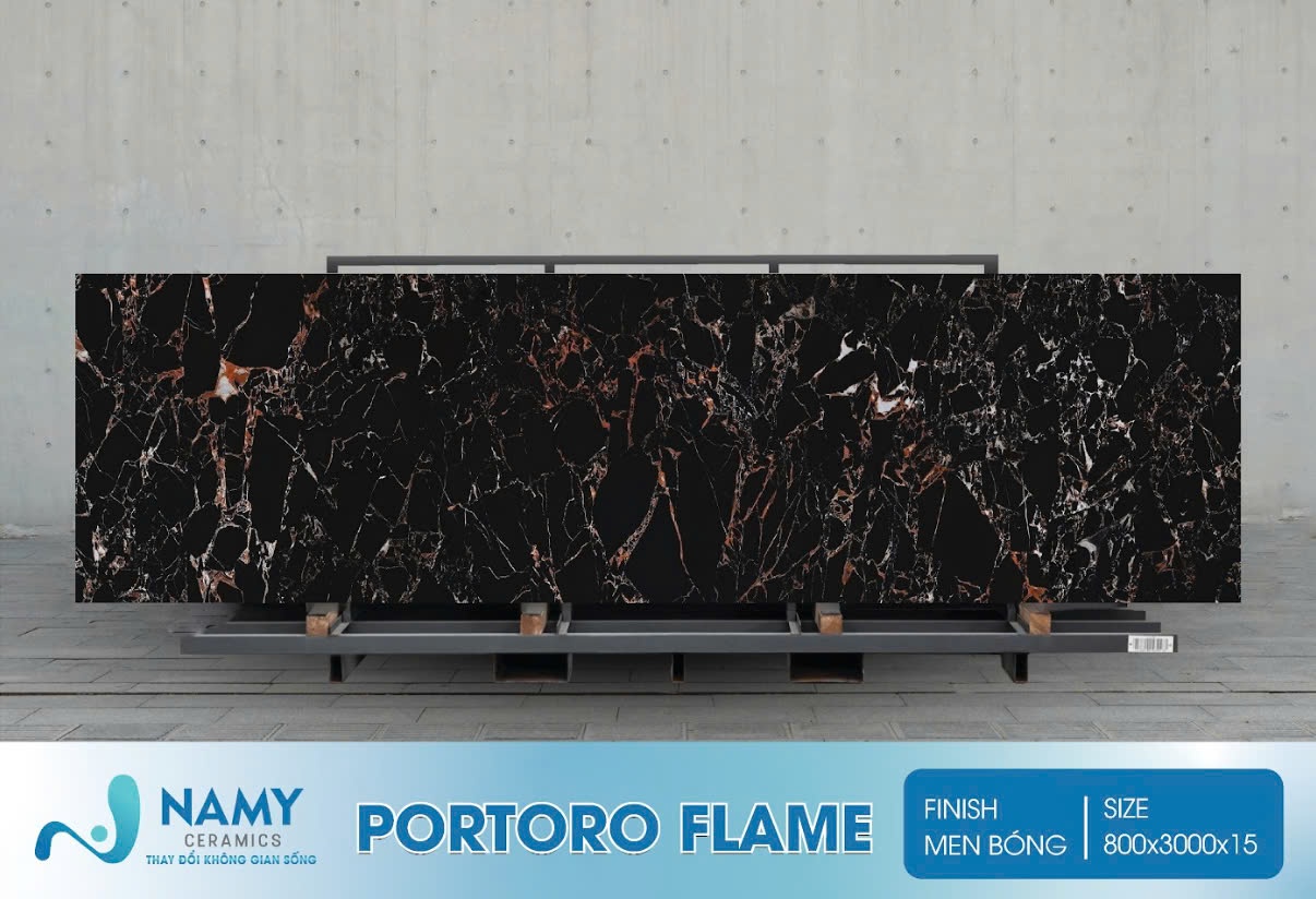 Tên gọi khác: Đá nung kết màu đen Portoro Flame, đá nung kết vân đá Portoro Flame, đá nung kết 800×3000 Portoro Flame.