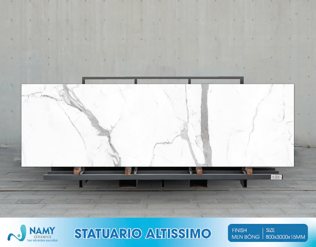 Tên gọi khác: Đá nung kết màu trắng Statuario Altissimo, đá nung kết 800×3000 Statuario Altissimo, đá nung kết vân đá Statuario Altissimo.