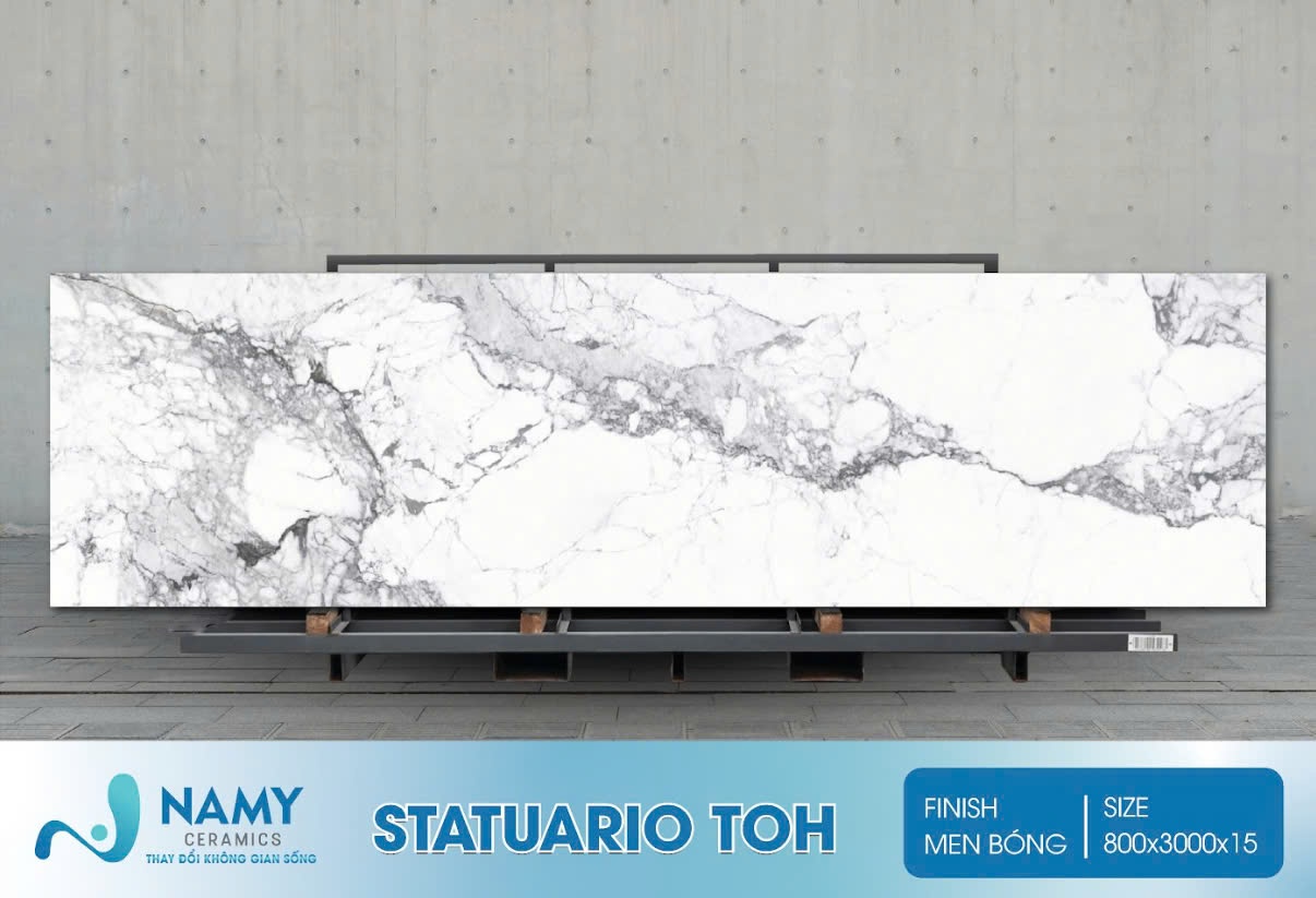 Tên gọi khác: Đá nung kết màu trắng Statuario Toh, đá nung kết vân đá Statuario Toh, đá nung kết Statuario Toh 800×3000 mm.