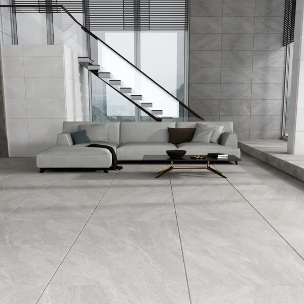 Phần lớn gạch lát nền 1200×1200 được sản xuất bằng công nghệ ép và nung hiện đại, sử dụng nguyên liệu granite hoặc porcelain cao cấp. Gạch có khả năng chịu lực lớn, chống mài mòn, không thấm nước và bền màu theo thời gian – rất phù hợp cho các khu vực có mật độ sử dụng cao.