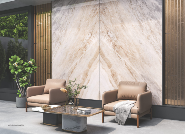 Gạch khổ lớn giả đá hoa cương sang trọng phù hợp với các hạng mục như mặt tiền, lát sàn,…