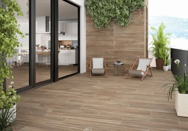 • Không gian ngoài trời: Nhờ khả năng chống chịu thời tiết, gạch giả gỗ được dùng nhiều tại ban công, sân thượng, sân vườn…