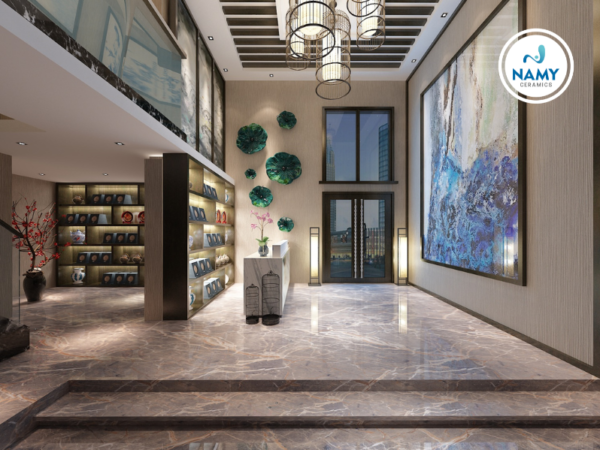 Bề mặt đa dạng: Có thể là bóng kính, bán bóng hoặc mờ, với các hoa văn vân đá, vân xi măng, vân gỗ tinh tế.
