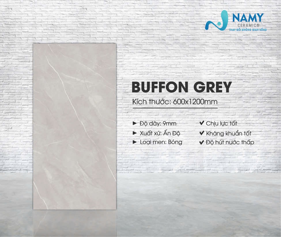 Tên gọi khác: Gạch khổ lớn Buffon Grey, gạch màu xanh nhạt Buffon Grey, gạch ốp lát Buffon Grey, gạch trang trí Buffon Grey, gạch Buffon Grey 600×1200 mm, gạch lát nền Buffon Grey, gạch ốp tường Buffon Grey, gạch giả đá Buffon Grey.