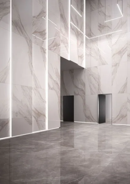 Khả năng chịu lực và chống trầy xước cao giúp gạch khổ lớn phù hợp với khu vực có mật độ di chuyển nhiều như trung tâm thương mại, văn phòng, khách sạn hoặc nhà phố đông người sử dụng.