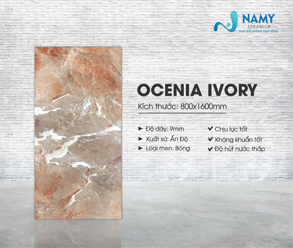 Tên gọi khác: Gạch khổ lớn Ocenia Ivory, gạch ốp lát Ocenia Ivory, gạch giả đá Ocenia Ivory, gạch lát nền Ocenia Ivory, gạch ốp tường Ocenia Ivory, gạch màu nâu Ocenia Ivory, gạch màu đỏ cam Ocenia Ivory.