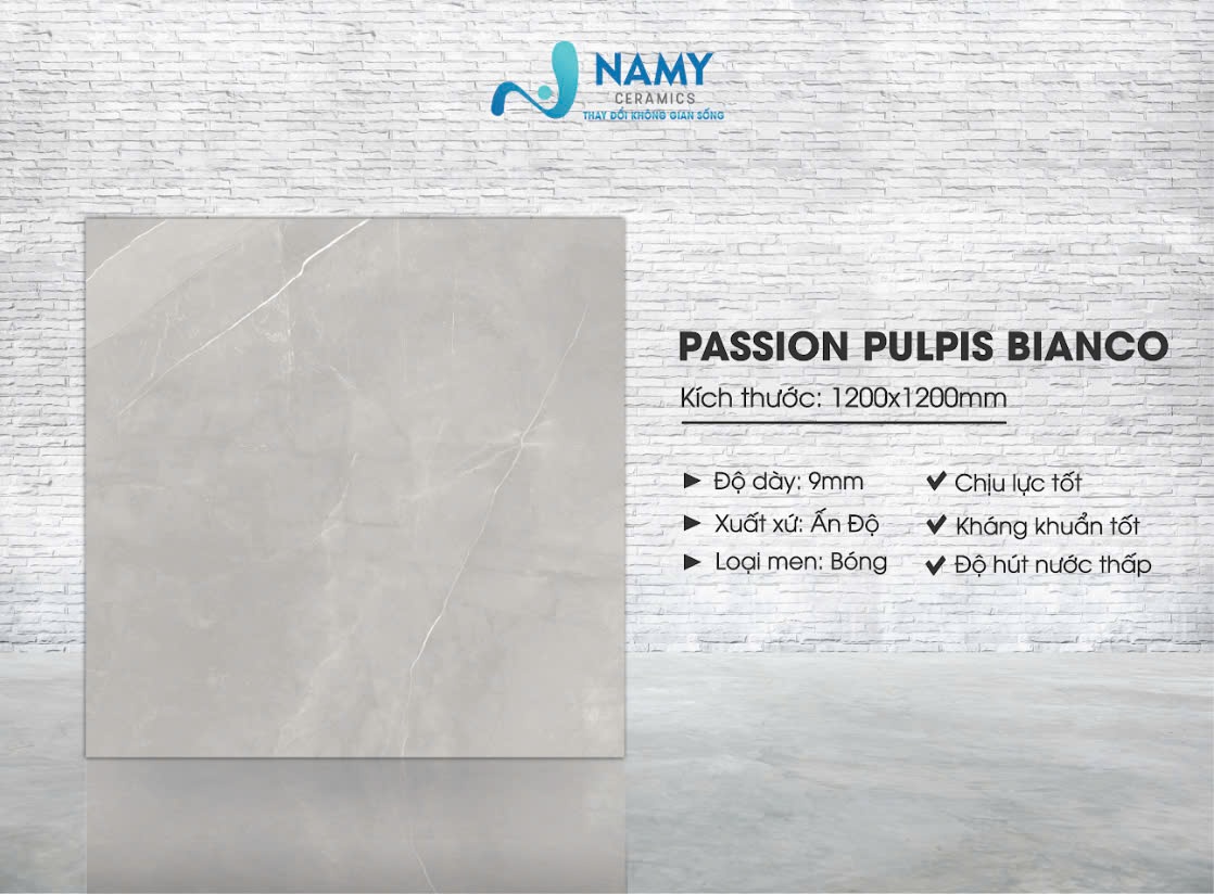Tên gọi khác: Gạch khổ lớn Passion Pulpis Bianco, gạch ốp lát Passion Pulpis Bianco, gạch Passion Pulpis Bianco màu xám, gạch giả đá Passion Pulpis Bianco, gạch lát nền Passion Pulpis Bianco, gạch ốp tường Passion Pulpis Bianco, gạch Passion Pulpis Bianco vân đá, gạch trang trí Passion Pulpis Bianco.