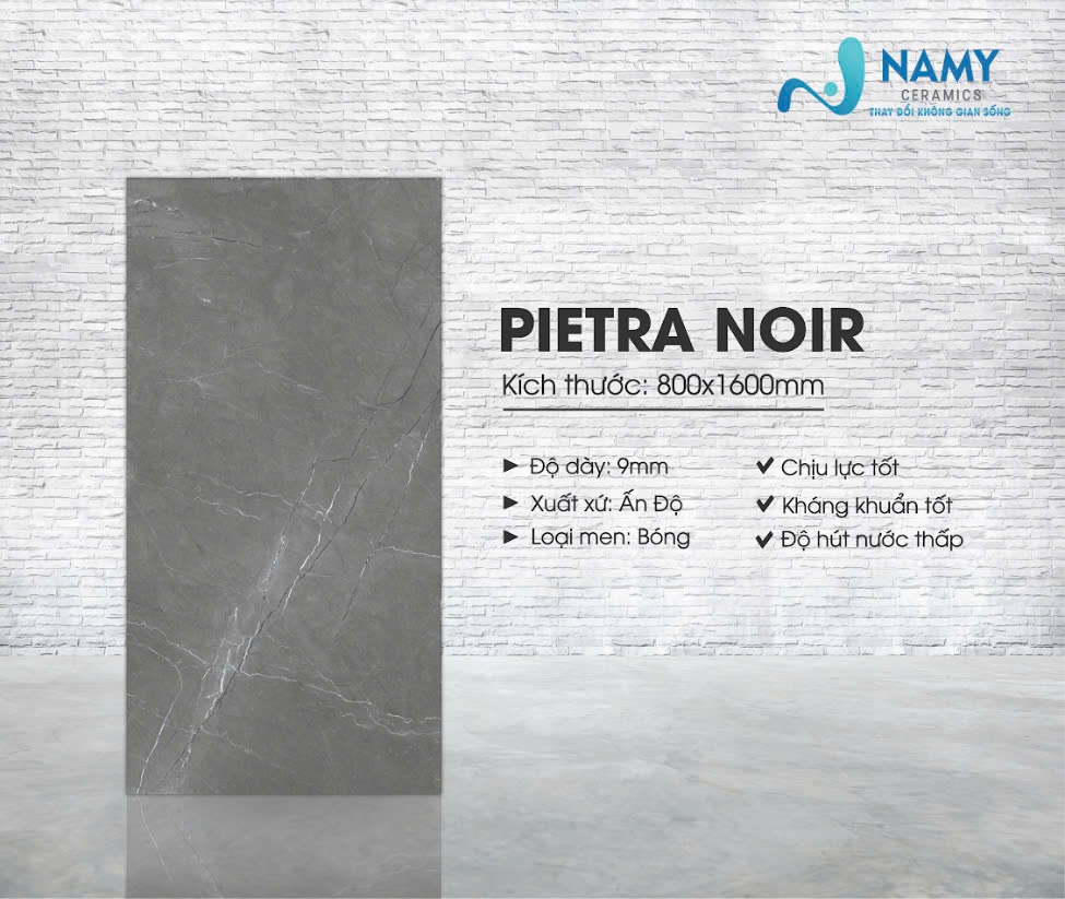 Tên gọi khác: Gạch khổ lớn Pietra Noir, gạch ốp lát Pietra Noir, gạch lát nền Pietra Noir, gạch ốp tường Pietra Noir, gạch màu xám Pietra Noir, gạch giả đá Pietra Noir, gạch màu xám vân đá Pietra Noir.