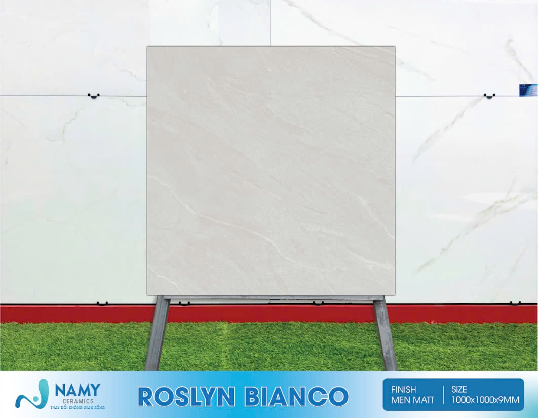 Tên gọi khác: Gạch khổ lớn Roslyn Bianco, gạch ốp lát Roslyn Bianco, gach Roslyn Bianco 1000×1000 mm, gạch vuông Roslyn Bianco, gạch lát nền Roslyn Bianco, gạch chống trơn Roslyn Bianco, gạch men matt Roslyn Bianco, gạch Roslyn Bianco màu xám đơn sắc, gạch Roslyn Bianco màu xám trắng.