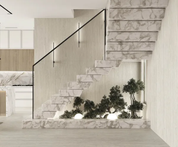 Gạch vân đá sang trọng cho cầu thang