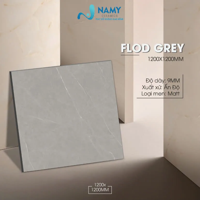 Flod Grey là một trong số các mẫu gạch vuông men matt có kích thước lớn nhất tại kho NAMY. Với kích thước 1200x1200mm, bề mặt không trơn, kết hợp với tone màu xám nhạt và các đường vân giả đá nhẹ nhàng tạo nên vẻ thanh lịch và hiện đại. Flod Grey mang lại cảm giác gần gũi, sạch sẽ, trang nhã và sang trọng, phù hợp với những không gian rộng như phòng khách, không gian mở, sảnh đón hoặc các trung tâm thương mại,…