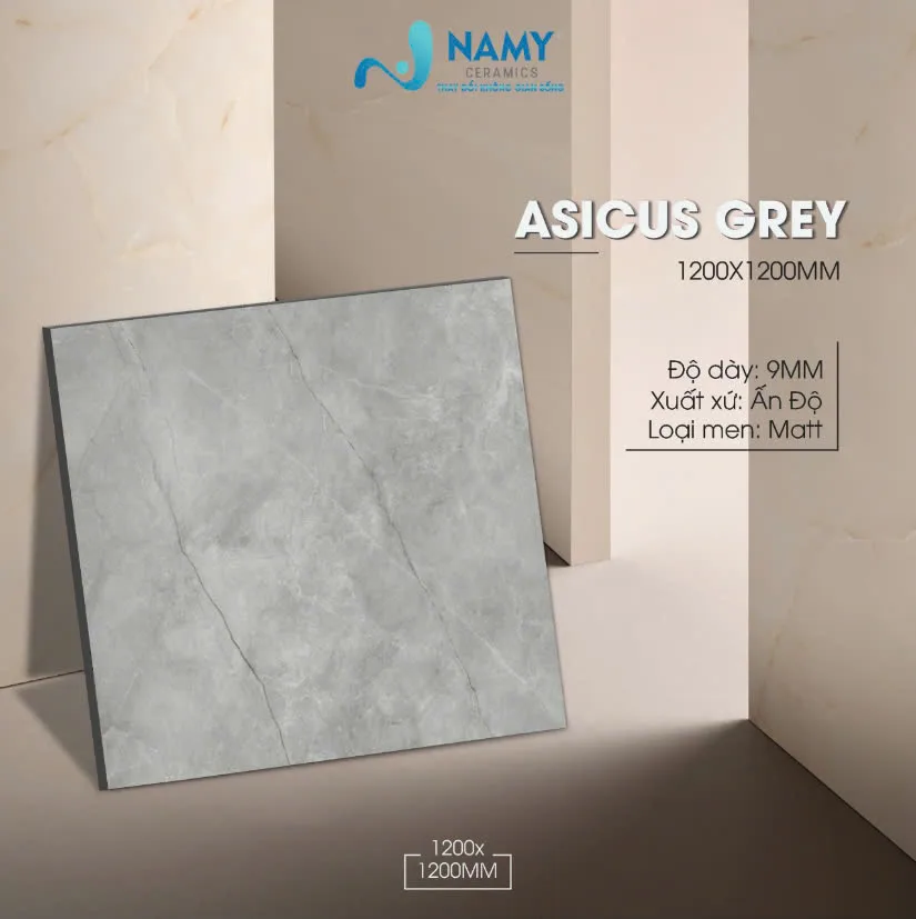 Tiếp tục là một mẫu gạch màu xám thu hút lượng lớn sự quan tâm mỗi khi nhắc đến, Asicus Grey kích thước 1200×1200 là sản phẩm tiếp theo mà NAMY muốn giới thiệu đến quý khách hàng. Một điểm độc đáo ở mẫu gạch này là nó có hoạ tiết vân đá vô cùng tự nhiên, đường vân rất đỗi chân thực đem đến một cảm giác gần gũi, vừa lạ mà vừa quen.