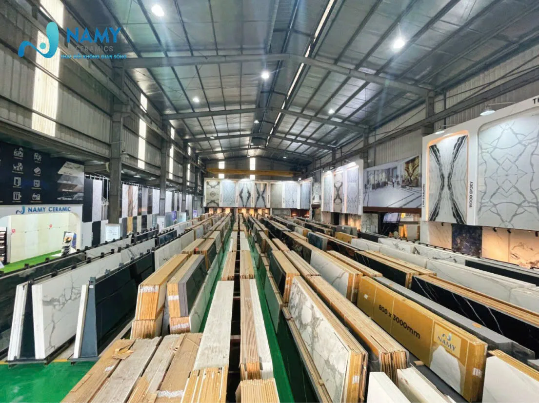 Tổng Kho gạch NAMY Ceramics là đơn vị chuyên cung cấp, phân phối và thi công các sản phẩm gạch đá ốp lát khổ lớn, đá nung kết hàng đầu thị trường. Là dòng gạch nhập khẩu trực tiếp, tất cả sản phẩm gạch ốp lát nói chung và gạch lát nền nói riêng của nhà NAMY đều có chất lượng vượt trội với độ cứng, độ bền cao, khả năng chịu lực, chịu nhiệt tốt, bề mặt chống thấm, chống xước vượt trội, duy trì tính thẩm mỹ lâu dài cho công trình.