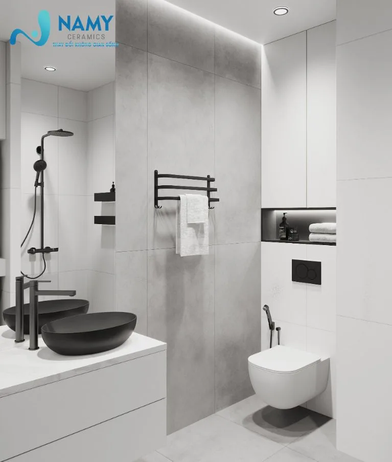 Khu vực nhà tắm và nhà vệ sinh là nơi thường tiếp xúc với nước, chất tẩy rửa, xà phòng, dầu gội,… Vì vậy việc chọn gạch nhám để lát nền là lựa chọn ưu tiên hàng đầu.