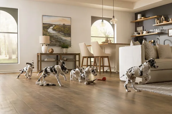 - Trước tiên là giữ được tính thẩm mỹ bền vững. Mặt sàn ít trầy xước giúp không gian luôn sạch đẹp, hạn chế cảm giác cũ kỹ sau thời gian dài sử dụng.