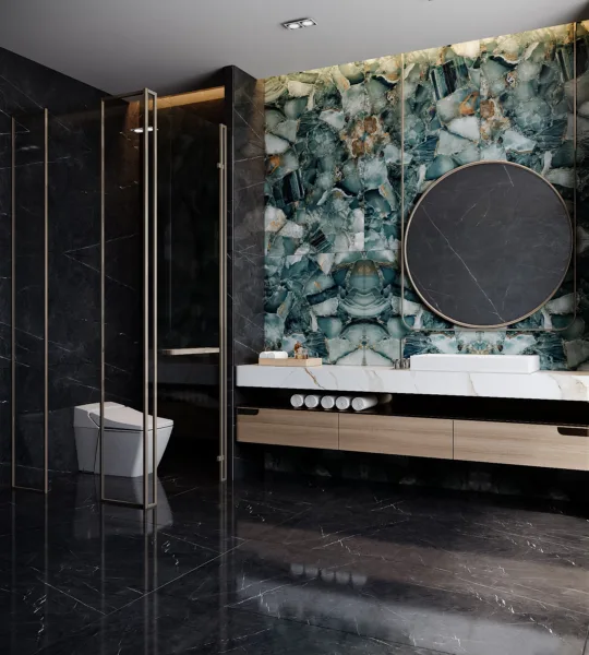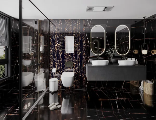 Gạch vân đá màu đen ốp tường, lát sàn nhà tắm