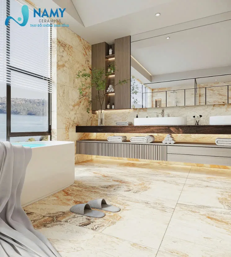 Bài viết trên đây của NAMY Ceramics đã chia sẻ cho quý khách hàng một số vấn đề liên quan đến gạch lát nền màu vàng vân đá. Hy vọng rằng với những thông tin ở trên, quý khách hàng sẽ có thêm nhiều gợi ý và kinh nghiệm hơn khi lựa chọn sản phẩm gạch ốp lát phù hợp với công trình của mình.