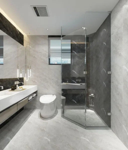 Gạch men matt vân đá nhẹ: phù hợp với phòng tắm hiện đại, tạo cảm giác sang trọng, tinh tế mà không quá phô trương.