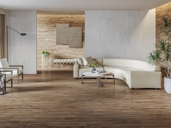 Tông nâu gỗ luôn là lựa chọn “kinh điển” cho những ai yêu thích không gian truyền thống, ấm cúng. Dòng gạch này thường được sử dụng trong phòng khách, phòng ngủ hoặc nhà hàng, homestay mang phong cách cổ điển. Vân gỗ sậm màu giúp che bụi tốt và tạo chiều sâu cho không gian.