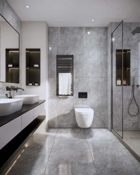 Được ép nén ở áp suất cao, gạch granite có độ cứng và độ bền vượt trội. Khả năng chống thấm, chống trầy xước tốt, thích hợp cho phòng tắm cao cấp, mang lại vẻ đẹp sang trọng và tinh tế.