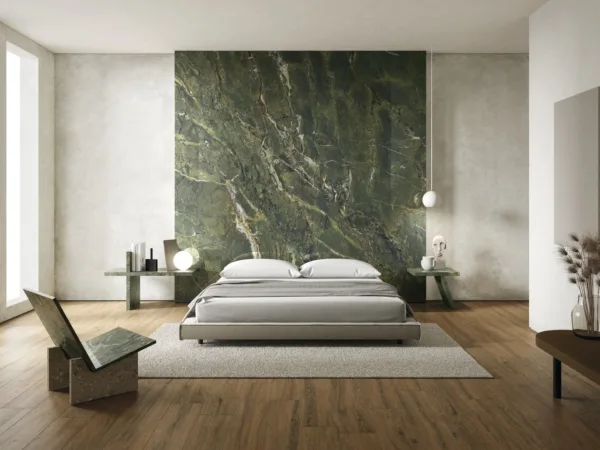 Nếu trước đây sơn nước hay giấy dán tường được ưa chuộng để hoàn thiện nội thất phòng ngủ, thì hiện nay gạch lát tường phòng ngủ đang trở thành xu hướng mới nhờ sự bền bỉ, tính thẩm mỹ cao và đa dạng lựa chọn. Không còn giới hạn trong các không gian ẩm ướt như nhà tắm hay bếp, gạch ốp tường đã lấn sân mạnh mẽ vào các khu vực như phòng khách và đặc biệt là phòng ngủ, tạo nên điểm nhấn ấn tượng cho tổng thể kiến trúc.