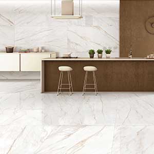 - Gạch vân đá marble trắng Ý: Tinh tế, giúp bếp sáng và sạch hơn.