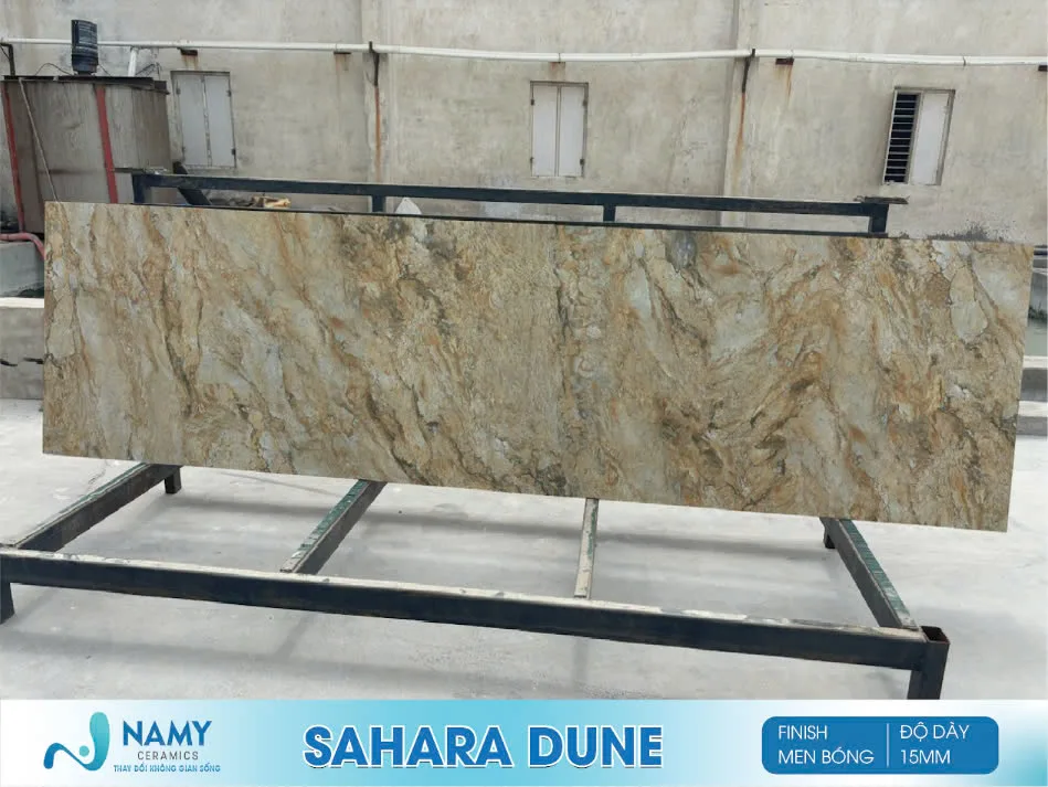Tại Tổng Kho gạch NAMY Ceramics hiện nay đang cung cấp các dòng gạch ốp lát khổ lớn ốp mặt tiền không chỉ màu vàng mà còn có rất nhiều màu sắc khác với đa dạng kích thước như: 600x1200mm, 800x1600mm, 800x2400mm, 800x3000mm, 800x3200mm, 1200x2400mm,… với các hoa văn và tone màu đậm nhạt khác nhau. Bên cạnh đó, NAMY cũng đặc biệt chú trọng vào chất lượng gạch bên trong, luôn kiểm tra kỹ lưỡng các yếu tố độ cứng, độ bền, khả năng chống thấm xước, chống phai màu,… trước khi mang đến tay người tiêu dùng. Quý khách hàng có thể truy cập vào namyceramic.com để tìm hiểu thêm về các dòng gạch mà NAMY Ceramics đang phân phối.