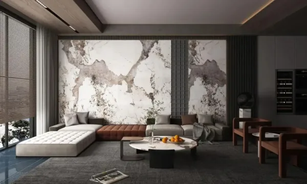 Gạch vân đá tự nhiên: Gợi cảm giác mát mẻ, trang nhã. Thường được sử dụng trong phòng khách hoặc mặt tiền để tạo điểm nhấn mạnh mẽ nhưng tinh tế.
