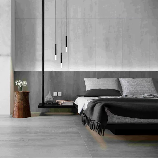 Phòng ngủ: Gạch ghi xám với khả năng chống ẩm và chống bám bẩn là lựa chọn lý tưởng cho khu vực nghỉ ngơi mang lại cảm giác sạch sẽ, thoải mái.