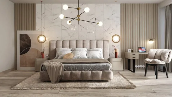 Dễ phối hợp nội thất: Gạch trắng phù hợp với nhiều phong cách thiết kế, từ hiện đại tối giản đến cổ điển nhẹ nhàng. Khi kết hợp với nội thất gỗ hoặc màu pastel, phòng ngủ sẽ thêm phần ấm áp và trang nhã.