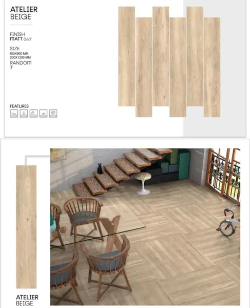Gạch thẻ ceramic được sản xuất từ đất sét và tráng men bề mặt, tạo nên độ bóng và hoa văn giống gỗ thật. Ưu điểm của loại gạch này là giá thành hợp lý, mẫu mã đa dạng và dễ thi công. Tuy độ bền chưa cao bằng dòng granite, nhưng ceramic vẫn đáp ứng tốt cho các công trình dân dụng, đặc biệt là khu vực nội thất như phòng khách hay phòng ngủ.