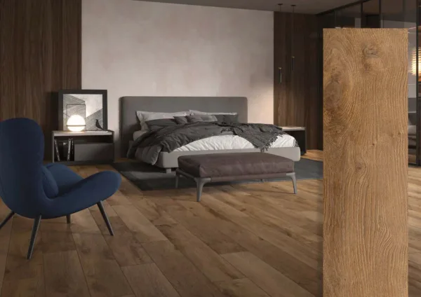 Đặc biệt, gạch porcelain vân gỗ có độ cứng cao, thích hợp cho cả khu vực có mật độ đi lại lớn.