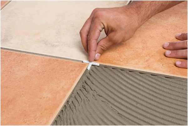 • Dùng ke chữ thập để canh đều khe gạch.