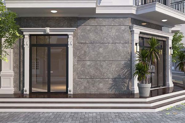 Mặt tiền luôn chịu tác động trực tiếp của nắng nóng, mưa bão và bụi môi trường. Gạch giả đá với cấu trúc bền chắc, độ hút nước thấp và lớp men bảo vệ giúp hạn chế phai màu, ngăn thấm nước và duy trì độ bền lâu dài.