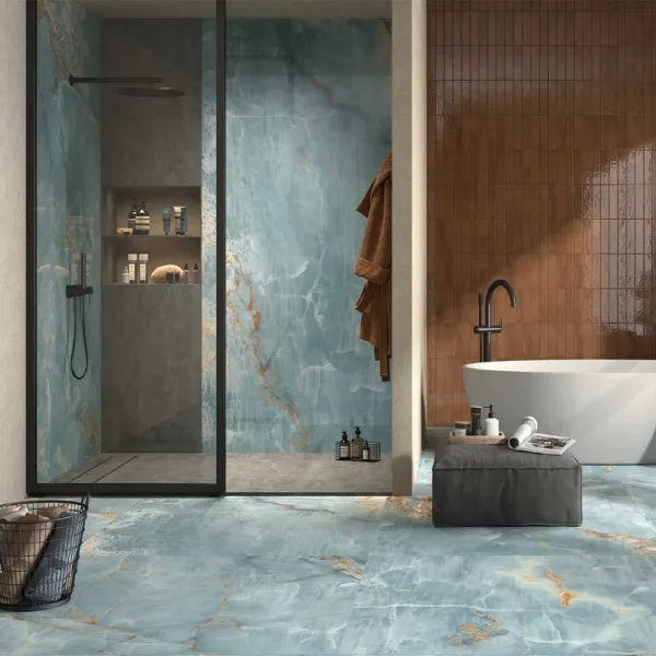 Gạch ốp tường màu xanh ngọc là một trong những dòng sản phẩm nổi bật được ưa chuộng trong những năm gần đây. Màu xanh ngọc tượng trưng cho sự yên bình, thanh lịch và gần gũi với thiên nhiên, dễ dàng tạo cảm giác thư giãn và thoáng đãng cho không gian sống. Gạch thường được thiết kế với bề mặt men bóng, men mờ hoặc vân đá nhẹ, góp phần tăng chiều sâu và nét sang trọng cho bức tường.