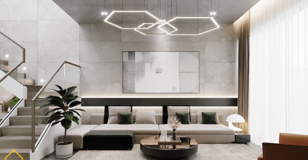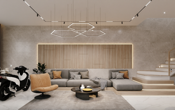 Phối cảnh 2: Phòng khách hiện đại