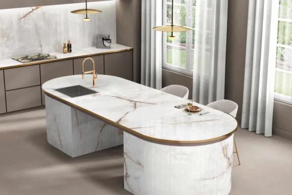 Đối với những ai theo đuổi phong cách tối giản và hiện đại, gạch vân đá mang lại vẻ đẹp tinh tế và sang trọng. Vân đá marble hoặc granite với đường nét mềm mại kết hợp cùng ánh sáng vàng nhẹ sẽ tạo nên một không gian ăn uống đẳng cấp và đầy cuốn hút.