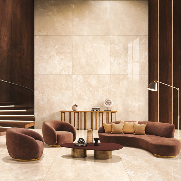 Đối với nhà phố hoặc căn hộ có trần thấp, màu sáng là lựa chọn tối ưu. Với các phòng khách rộng, có thể chọn gạch vân đá đậm để tạo chiều sâu và điểm nhấn cho không gian.