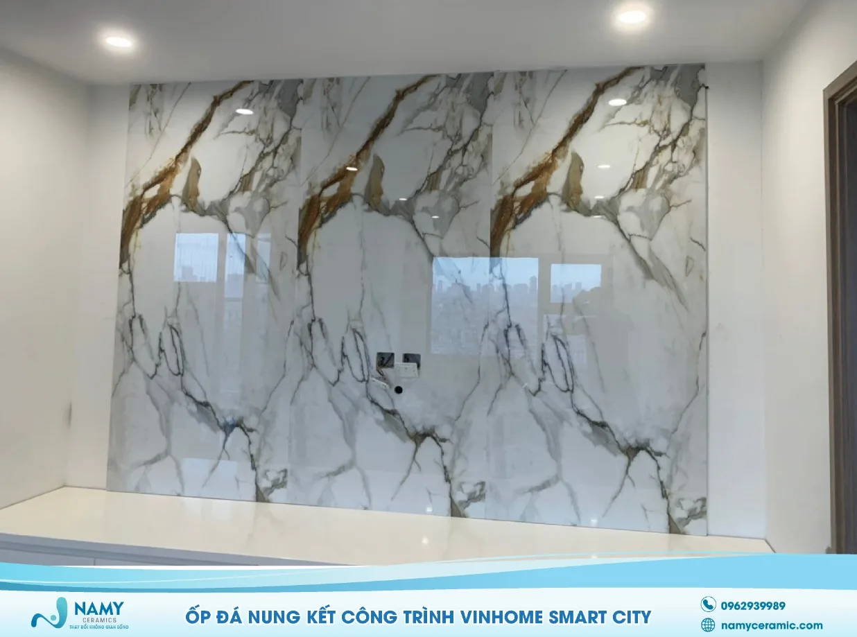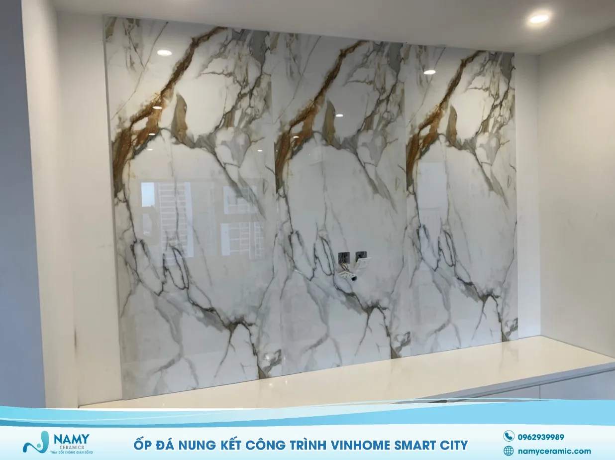 Ốp vách tivi và bàn bếp tại Vinhome Smart City