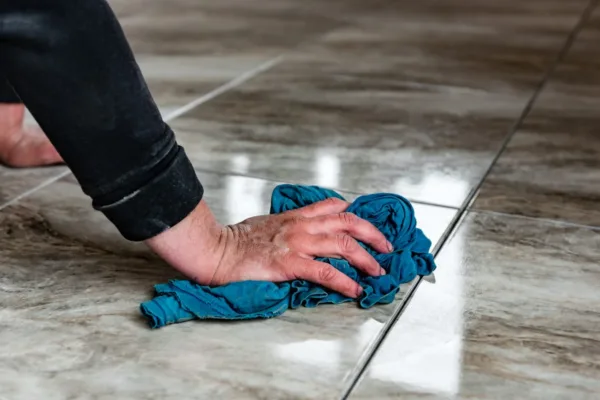 Sau 24–48h, tiến hành vệ sinh toàn bộ bề mặt nền.