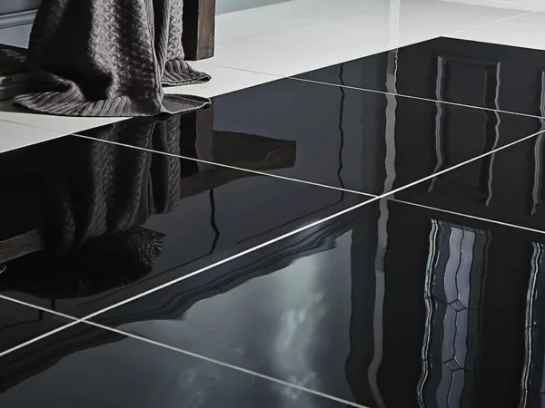 Mặt gạch được xử lý bóng gương hoặc mờ tinh tế giúp phản chiếu ánh sáng tốt, tăng chiều sâu cho không gian và tạo điểm nhấn rõ nét.