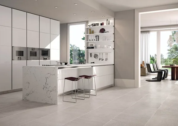 Phòng bếp: Gạch ceramic chống bám bẩn, dễ lau chùi, phù hợp với khu vực nấu nướng.