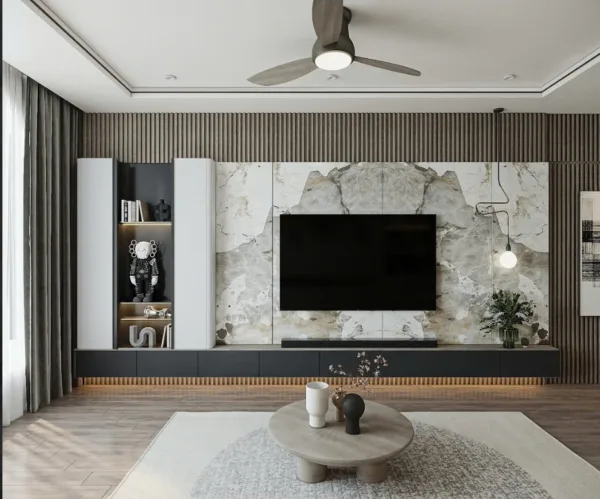 Sự đa dạng về kiểu vân – từ marble, terrazzo đến vân xi măng – cùng bề mặt men bóng/mờ giúp các mẫu gạch ốp tường khổ lớn phù hợp nhiều phong cách: hiện đại, tân cổ điển, Indochine, tối giản…